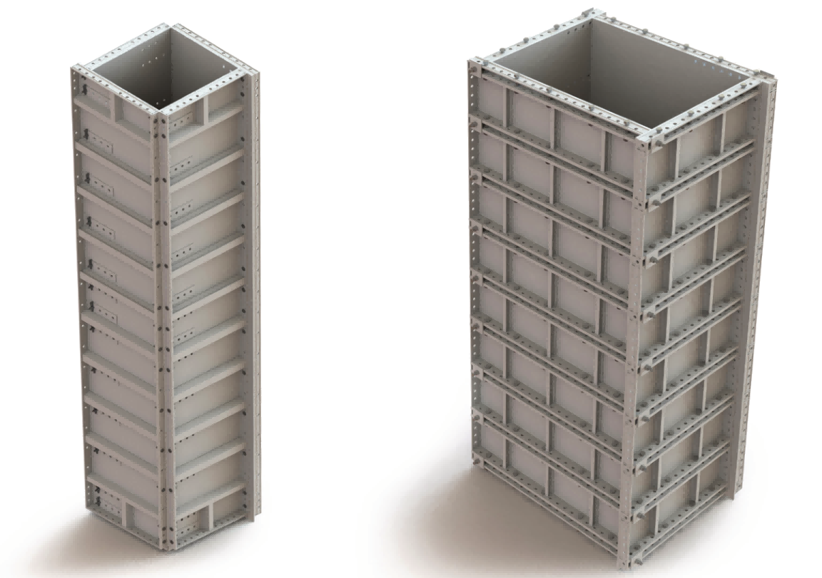 أنظمة قوالب الألمنيوم، قوالب الفولاذ، قوالب الخشب ذات الإطار الفولاذي، قوالب التسلق، قوالب الخرسانة ذات الوجه المسطح، وقوالب البنية التحتية.